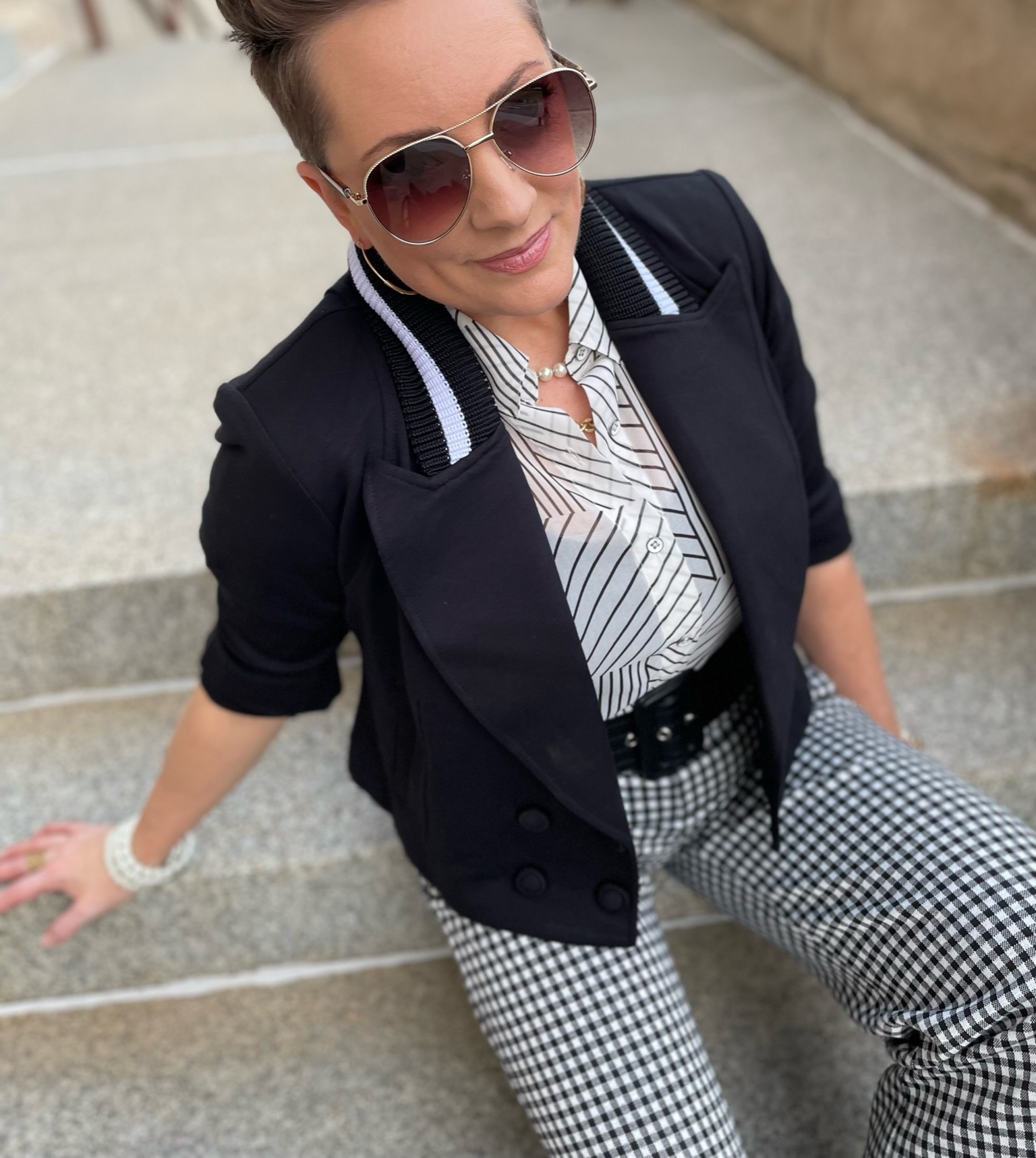 A good leather or faux leather jacket will never go out of style. Know the best cut for your body shape. Angie looks incredible in this moto style. Need help deterimining your body type? I can help.